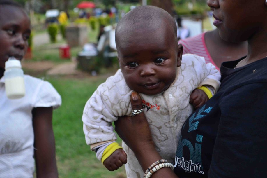 Baby Macharia held high by a charity volunteer at the #LoveKwaStreet Event at Central Park.